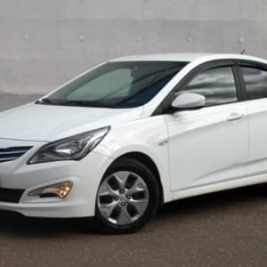 Hyundai Solaris - седан 2016г.в., АКПП, 107л.с. 1,4л -i, 2WD, белый металлик, 2SRS, ABS, ЭУР, темный тканевый салон, кондиционер, полный эл.пакет, эл.зеркала с обогревом, регулировка водит. сиденья по высоте, обогрев передних сидений, бортовой компьютер, магнитола CD/MP3, центральный замок, иммобилайзер, регулировка руля в 2-х положениях, 5 мест.