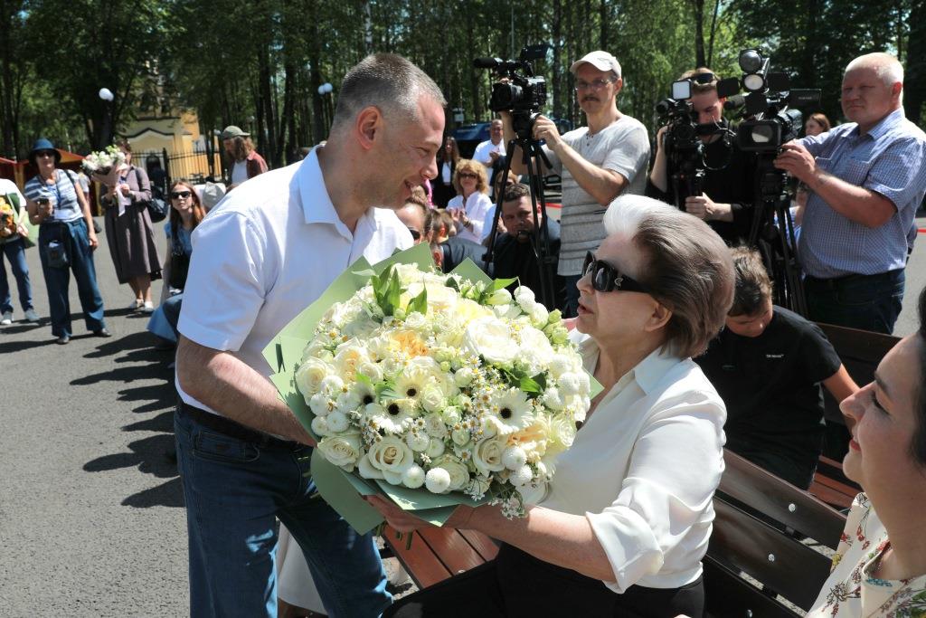 Михаил Евраев вместе с Валентиной Терешковой и вице-президентом Благотворительного фонда имени В.В. Терешковой Еленой Терешковой оценил благоустройство парка у дома культуры «Чайка» поселка Никульское.
