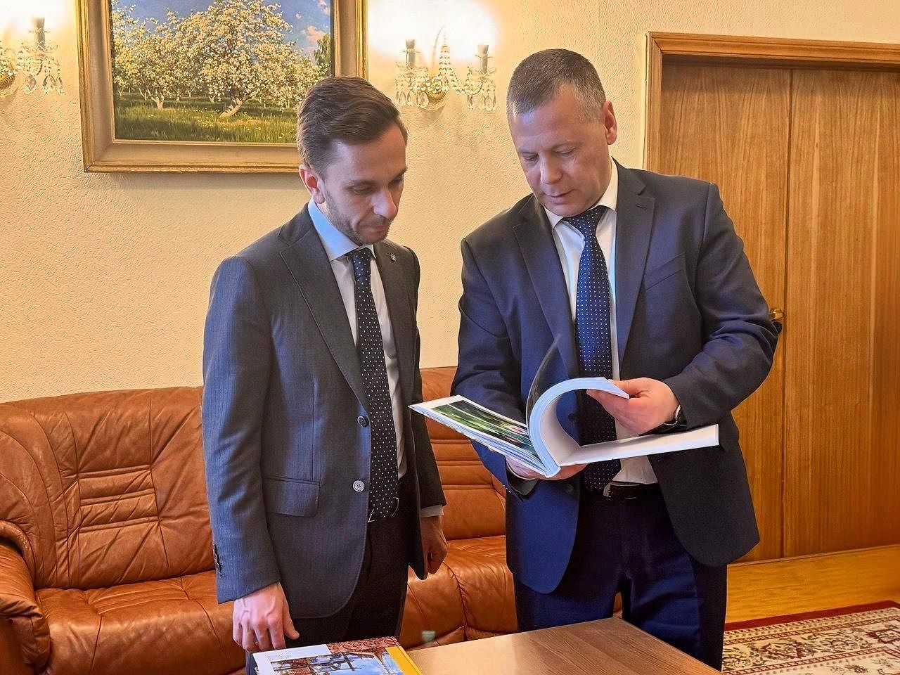 После церемонии открытия проекта состоялась рабочая встреча губернатора Михаила Евраева с руководителем Российского общества «Знание» Максимом Древалем.