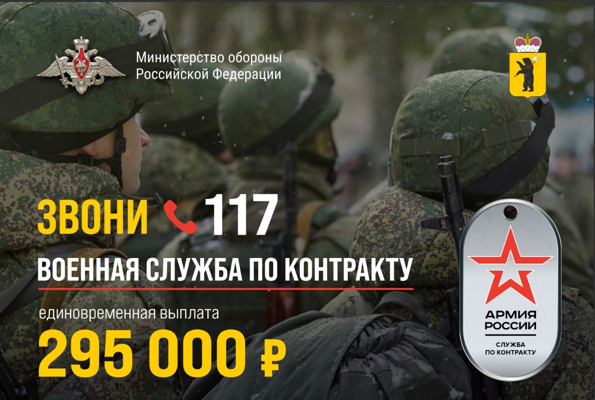 Единовременная выплата ярославцам, заключившим контракт на прохождение военной службы, составит 295 тысяч рублей.