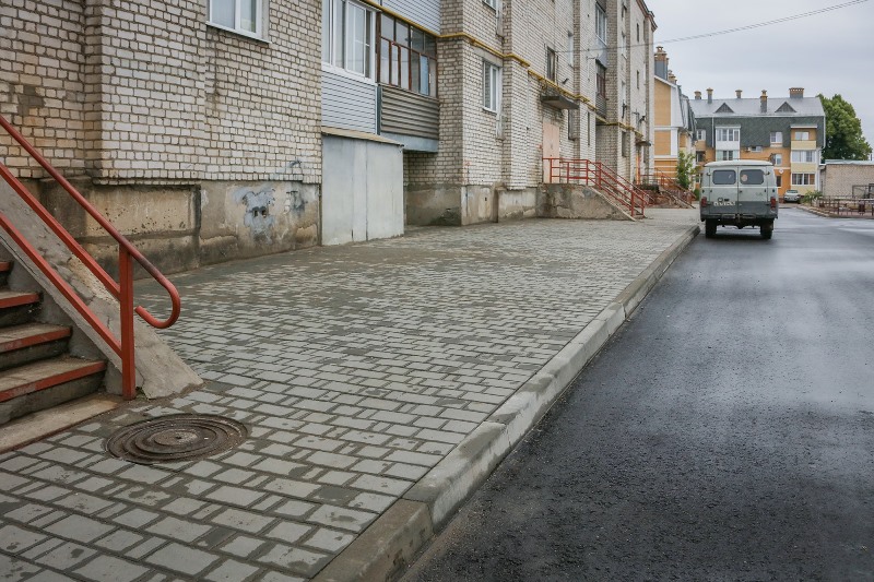 В Рыбинске продолжается благоустройство придомовых территорий по программе «Наши дворы». Особое внимание уделяется покрытию пешеходных зон и тротуаров. На половине дворов, где идут работы в этом году, выполнено мощение плиткой.