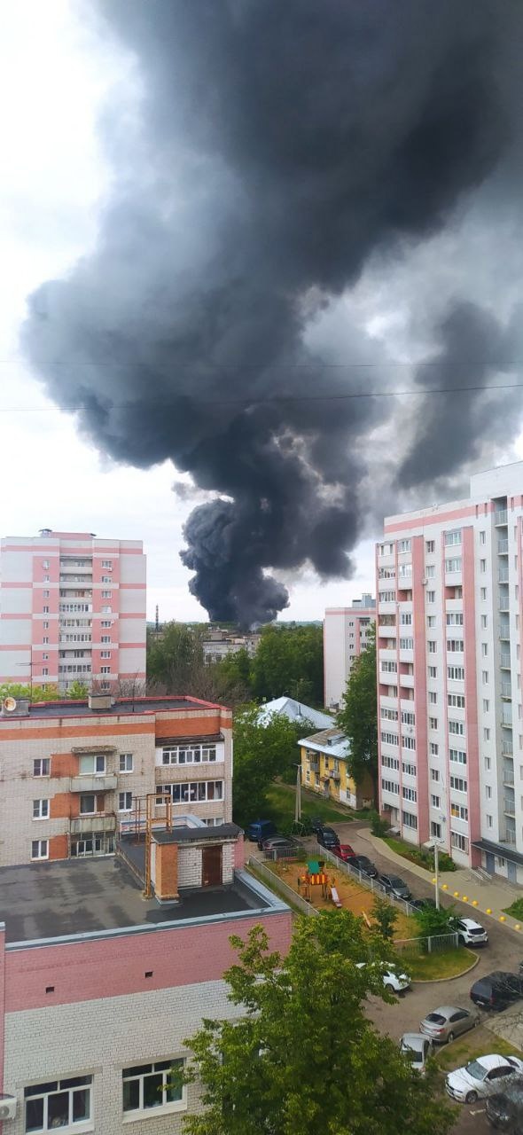 Пострадавших в пожаре нет, но в воздух попало большое количество продуктов горения, что и вызвало большой столб черного дыма.
