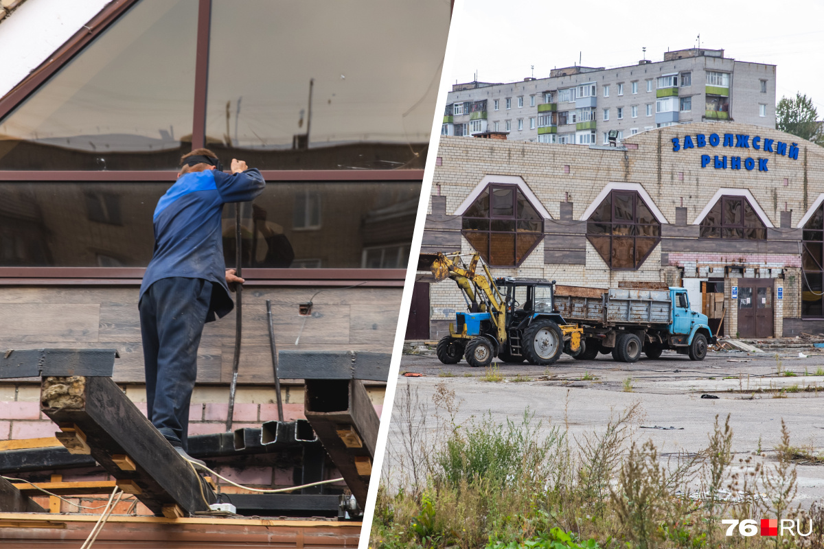 — Все палатки и ларьки уже разобраны, там только мусор лежит. Само здание Заволжского рынка разбирается. Пока там снимают внешнюю отделку. Сносить само здание будут, видимо, когда доделают забор. Там сейчас под него варят стойки, — рассказал с места фотограф 76.RU Кирилл Поверинов. — Уже перекрыли тротуар со стороны проспекта Машиностроителей — люди ходят по газону.