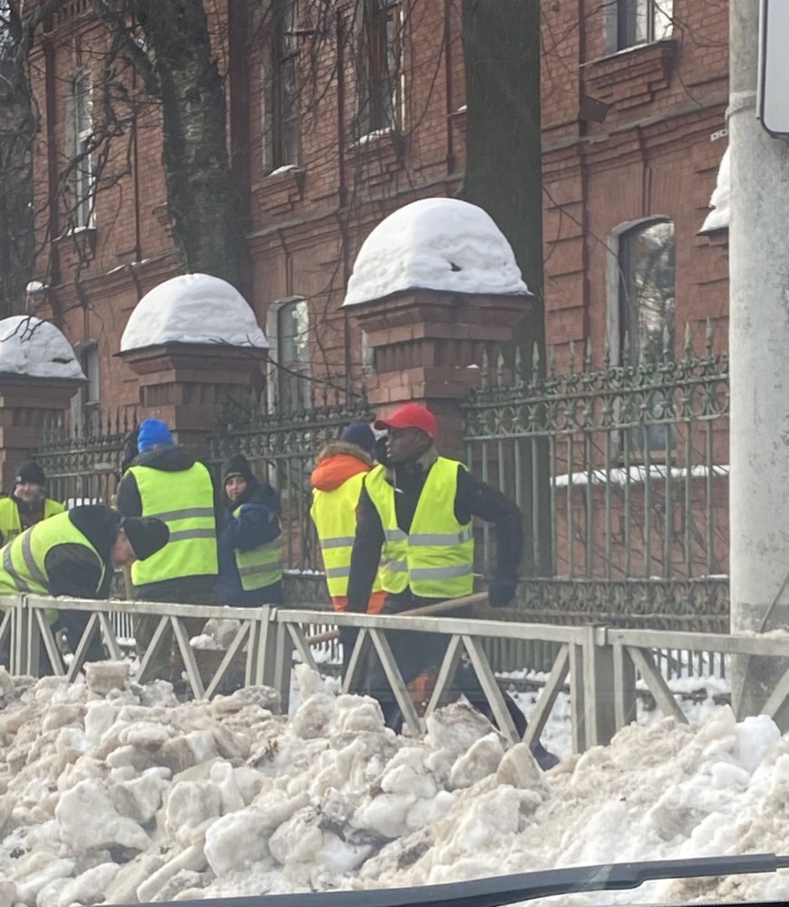 На уборке Ярославля от снега трудится темнокожий дворник