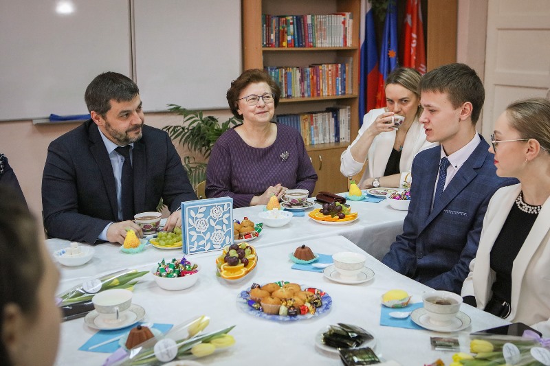 Школьник с помощью своего классного руководителя Елены Анисимовой и директора школы Ирины Дедкиной организовал чаепитие. Глава провел время с ребятами в неформальной обстановке. Две девочки рассказали, что планируют получить профессию педагогов и вернуться работать в родную школу. Дмитрий Рудаков поделился информацией о перспективах открытия в Рыбинске филиала педагогического университета им. К.Д. Ушинского, который даст возможность студентам одновременно проходить переподготовку и получать практику, работая в школе. Максим Квашнин рассказал о своей идее объединить людей, которые развивают город в интернет-пространстве.