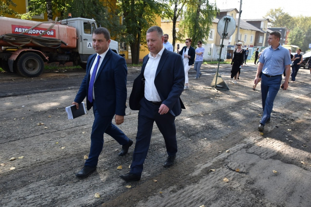 В пятницу, 1 сентября, наш городской округ с рабочим визитом посетил глава региона Михаил Яковлевич Евраев. География мест и объектов, где побывал губернатор, была обширной, график визита насыщенным. Объезд города стартовал с одной из проблемных дорог на улице Озерной, затем посмотрели на состояние дороги, идущей от Горицкого монастыря до войсковой части, побывали на Свободе, улицах Кооперативной и Строителей.