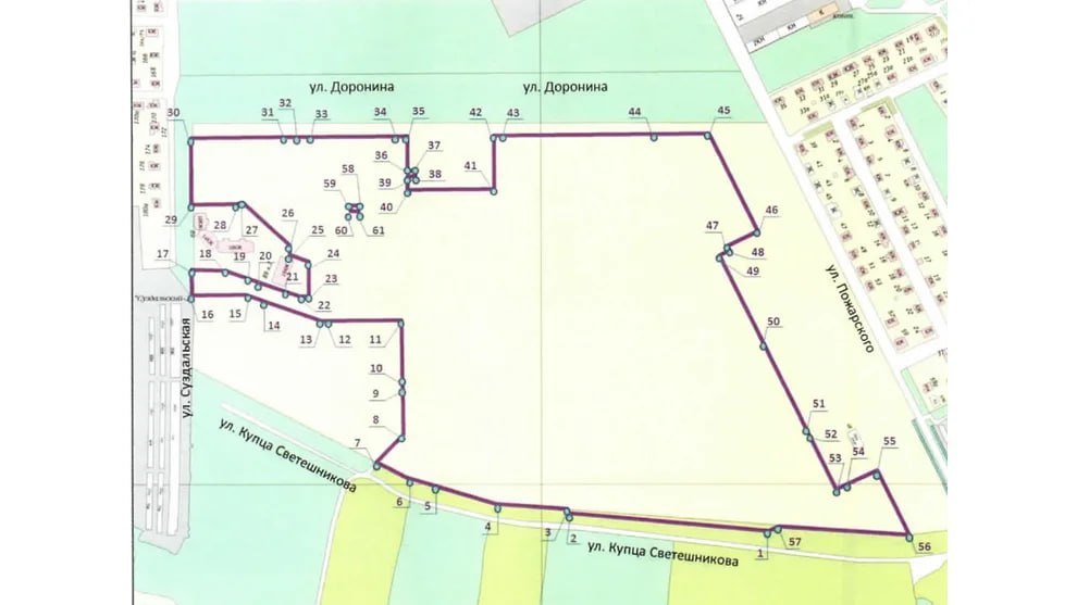 Речь идет о земле, ограниченной улицами Пожарского, Доронина, Суздальской и недавно появившейся улицей Купца Светешникова. Участок находится по соседству с пивзаводом и предприятием «Ярмолпрод». Общая площадь территории составляет 259 981 квадратный метр. КРТ предполагает возможность строительства 8-ми и 18-ти этажных домов, но точное их количество пока неизвестно. Территории понадобится проект планировки и межевания.