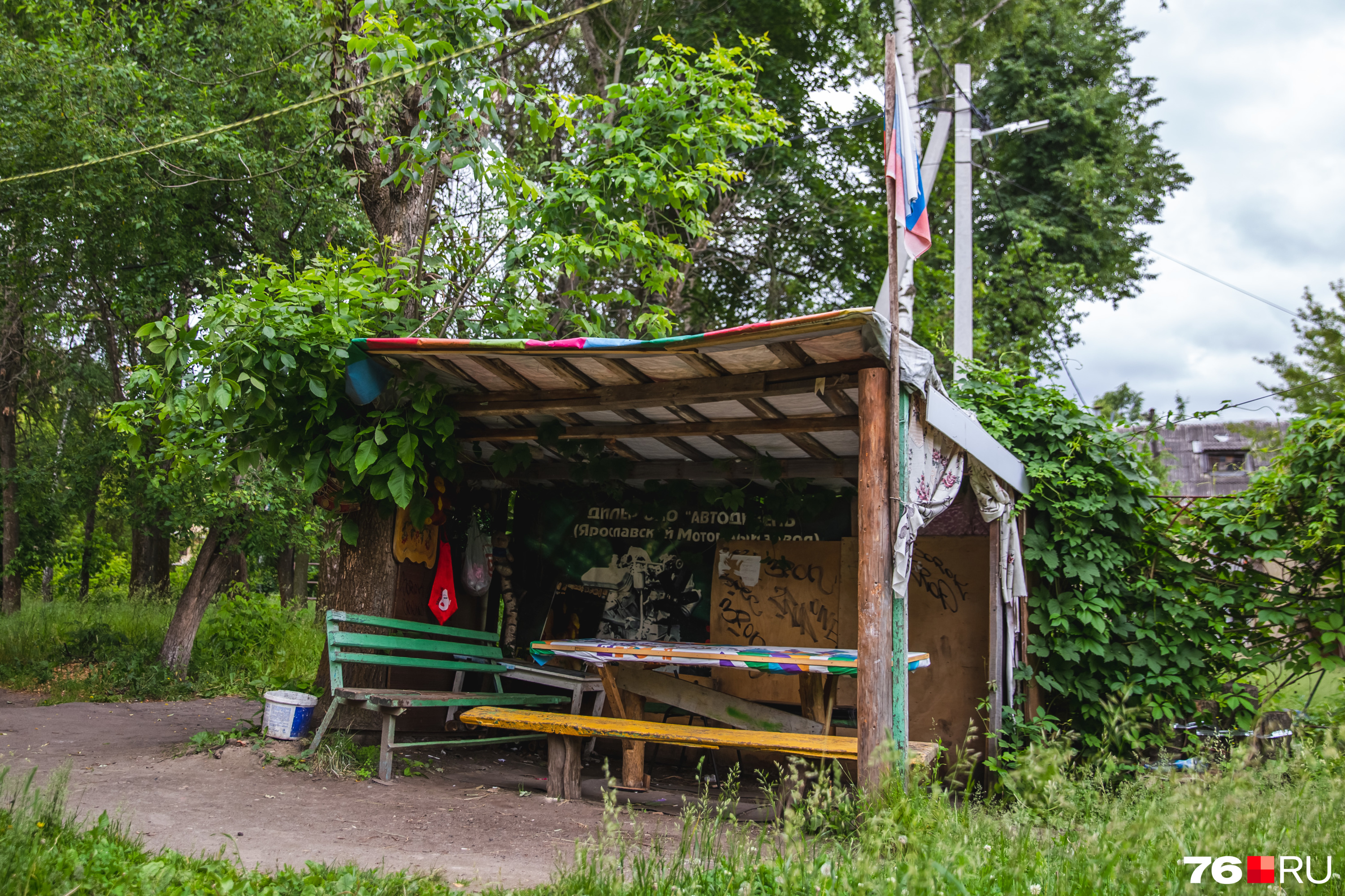 Патриотичная беседка на любую погоду стоит на Пятерке