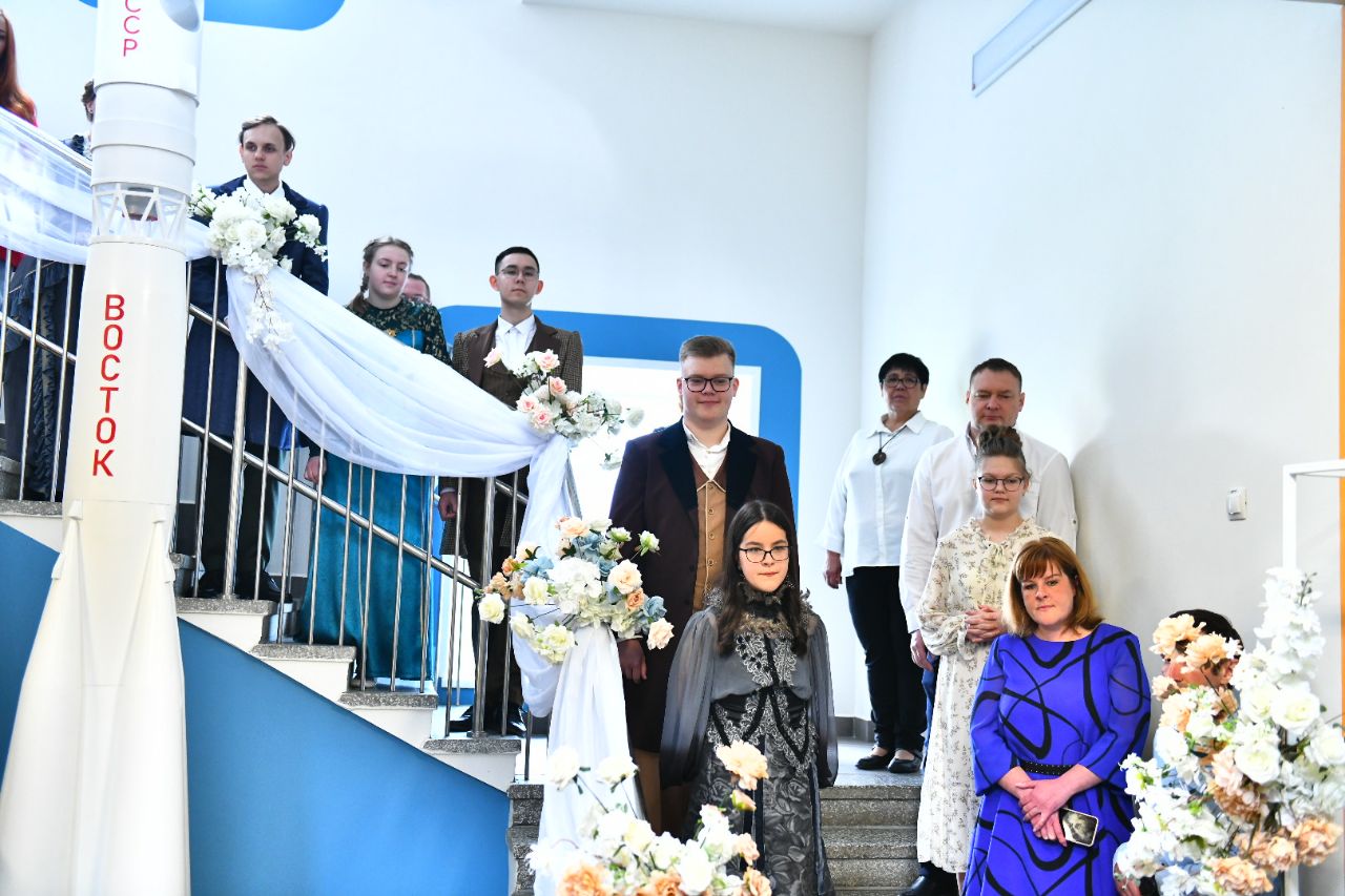 Мероприятие было организовано в стиле эпохи Д.И. Менделеева. Менделеевцы и гости праздника в костюмах того времени под живую музыку скрипок встречали родителей, педагогов и гостей школы на своём торжестве.