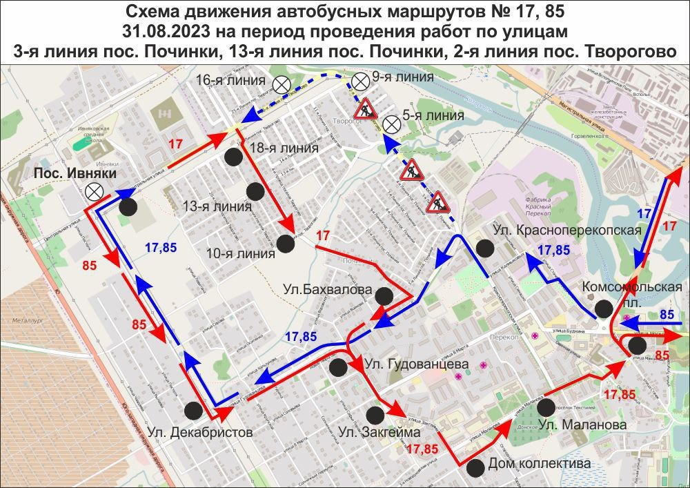 Общественный транспорт не будет ходить по 3 и 13 линиям в Починках и по 2-ой линии в Творогово. Так автобусы №17 и 85 при движении в сторону Ивняков не будут заезжать на остановки 5-я линия», «9-я линия» и «16-я линия».