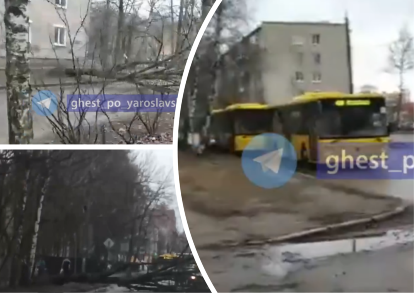 «Стоят автобусы по причине дерева, которое упало. Вот оно, красивое дерево, прямо на провода. И держится на проводах», — с иронией прокомментировал автор видео.