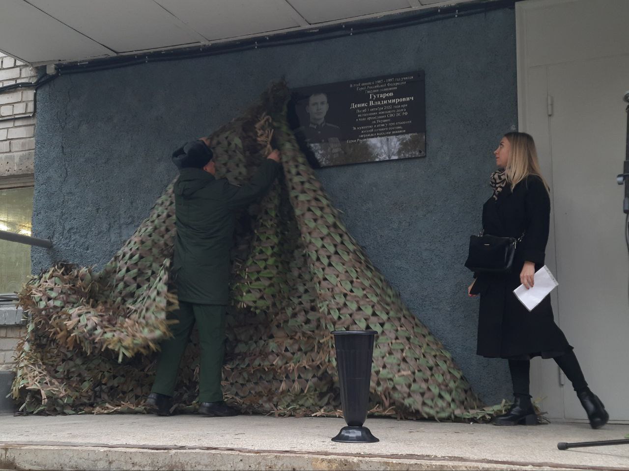Сегодня прошла торжественная церемония открытия мемориальной доски Гвардии полковнику Денису Гутарову, который погиб 1 октября 2022 года при исполнении воинского долга в ходе специальной военной операции.