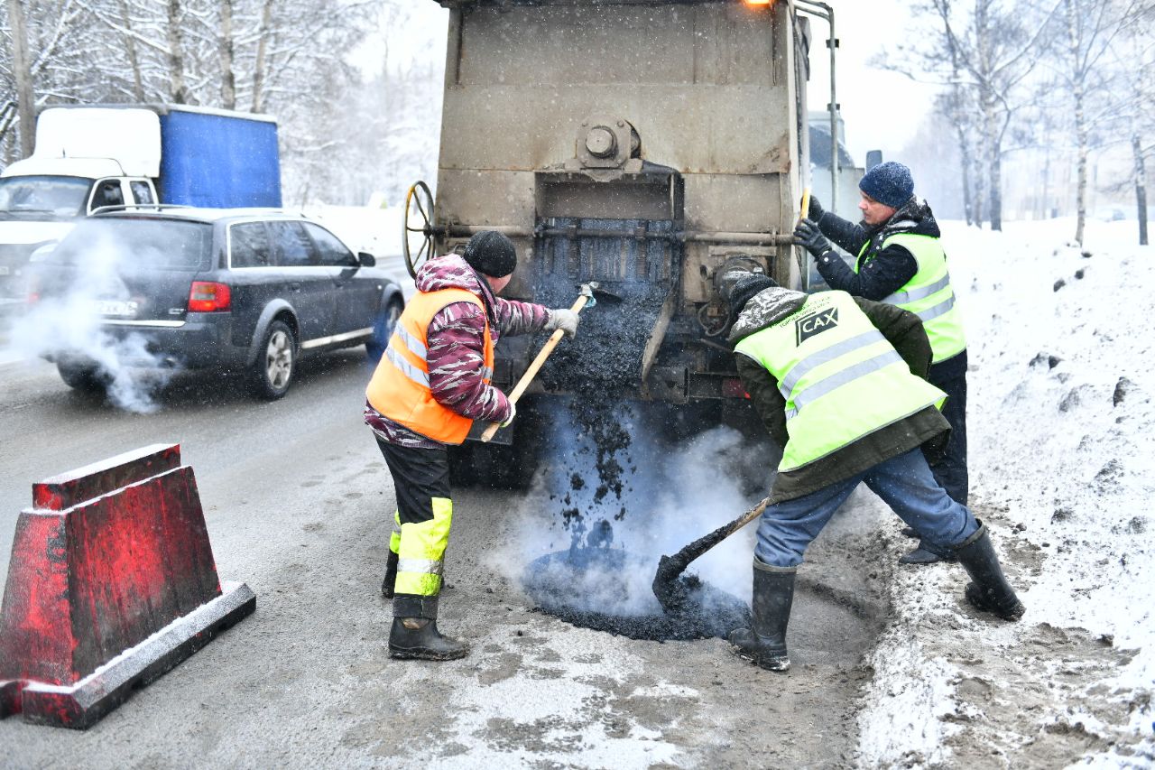 Сегодня работы по ямочному ремонту прошли на Московском проспекте и Юго-западной окружной дороге.