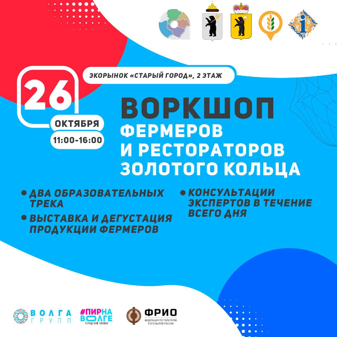 26 октября в Ярославле состоится воркшоп для рестораторов и фермеров Золотого кольца. На одной площадке соберутся рестораторы и производители сельскохозяйственной продукции. Главная задача мероприятия — дать возможность рестораторам и фермерам договориться о сотрудничестве и взаимодействии. Участники воркшопа смогут продегустировать продукты, представленные фермерами.