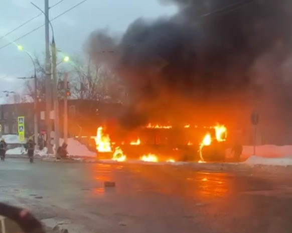 Вечером 14 февраля в Ярославле в районе остановки «Красный перевал» загорелся троллейбус. Сообщение о пожаре поступило в МЧС в 17:29. Через две минуты спасатели уже были на месте.