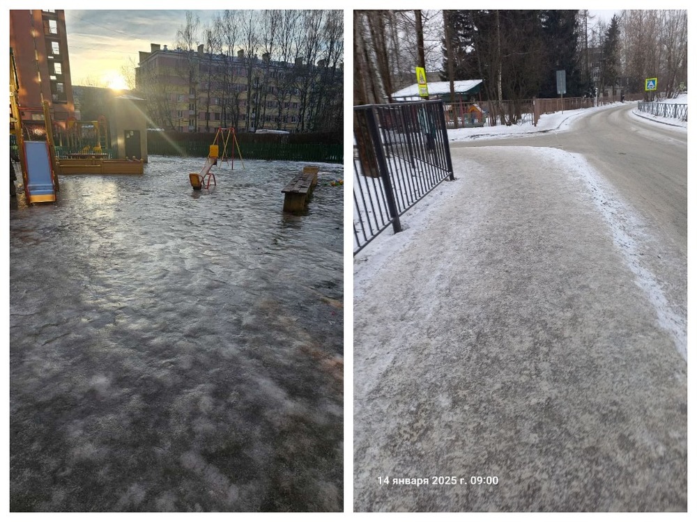 «Проблема в обработке тротуаров. В этом году было 5 ледяных дождей. Устранить последствия за 5 минут невозможно. Необходимо время. Мы работаем, усиливаемся»,— заявил глава «Горзеленхозстроя» Андрей Степанов.
