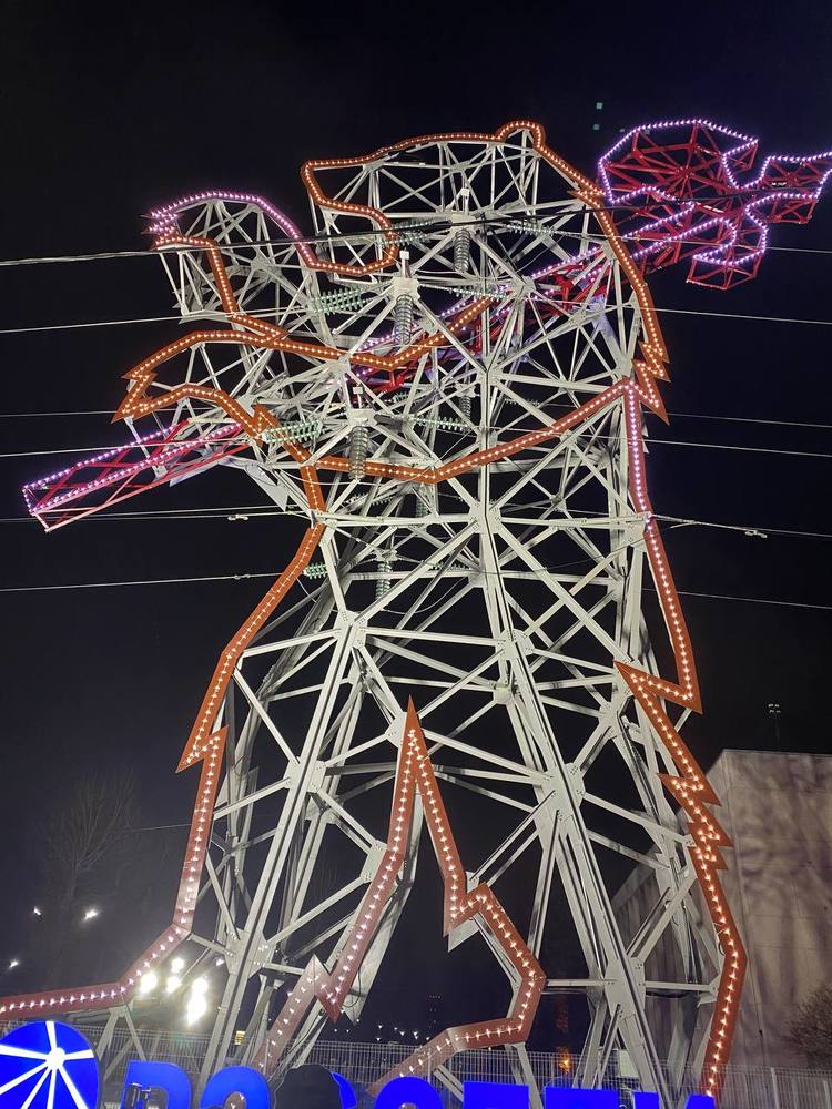В Ярославле торжественно включили подсветку ЛЭП-медведя – видео