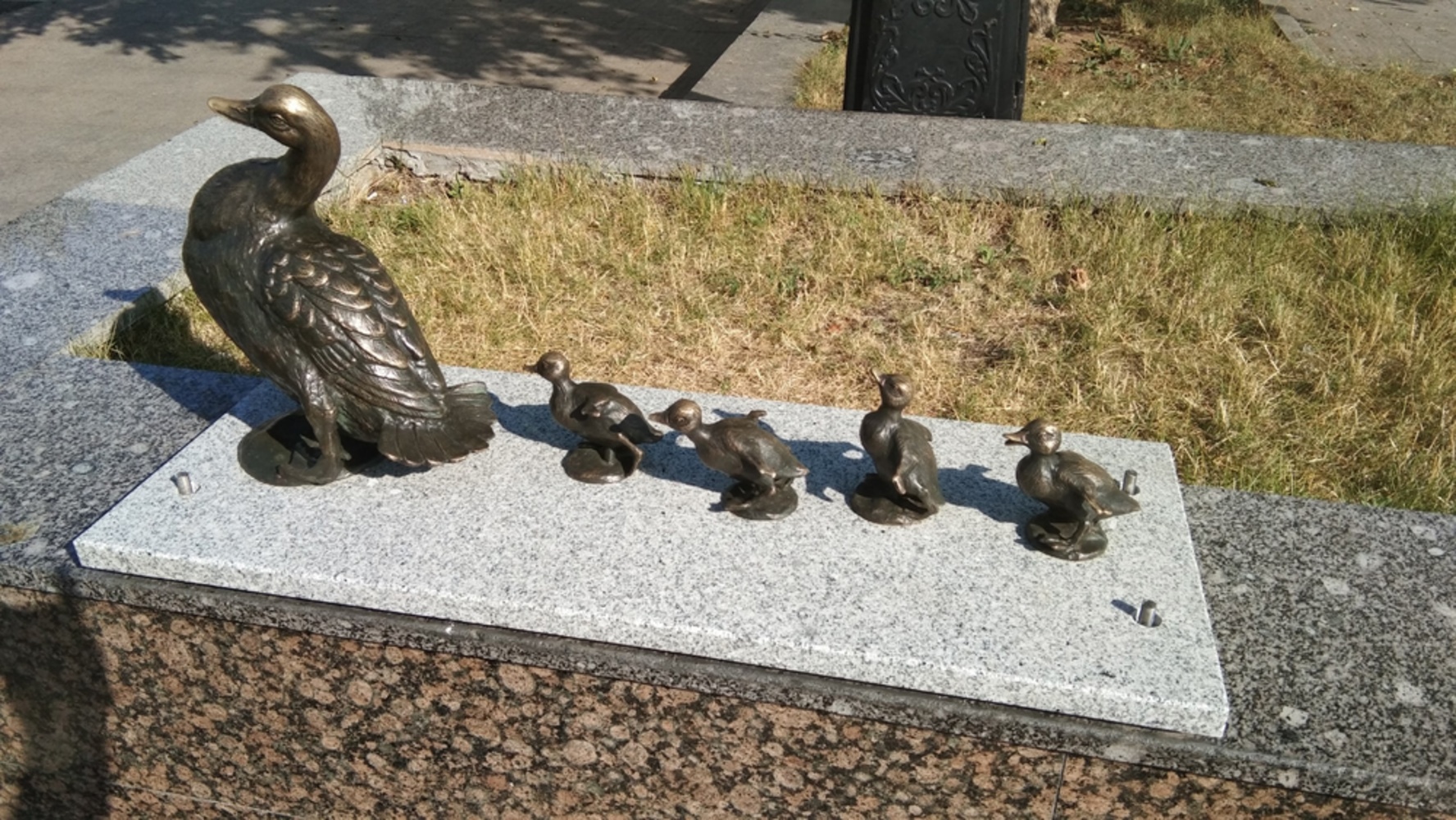 Уличная скульптура – мама-утка и четыре утенка – появилась в Ярославле в середине мая. Утиное семейство подарило горожанам ОАО «Ярославский речной порт». Директор предприятия заказывал скульптуру в другом городе. Но на своем месте арт-объект простоял чуть меньше месяца, в ночь с 11 на 12 июня скульптура пропала.