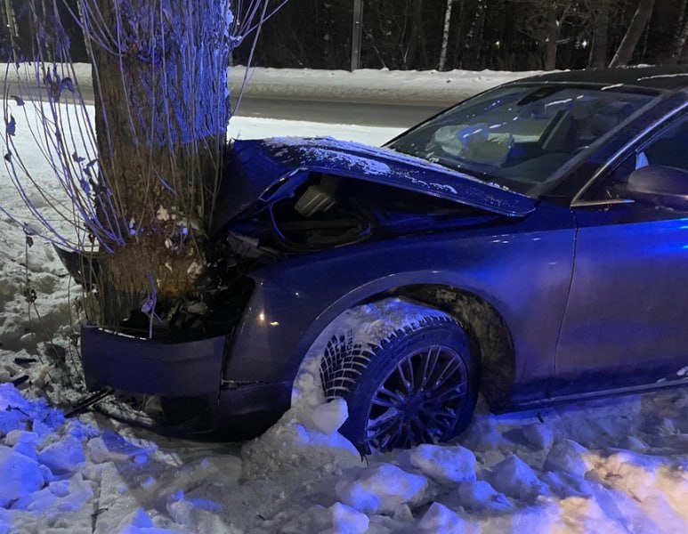 ДТП у дома №39 на улице Полушкина роща произошло 14 января в 20:47. Изначально здесь столкнулись «Ситроен» и «Ауди», после чего вторая машина улетела в дерево.