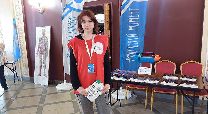 Студенты-добровольцы дежурят в общественных местах и у торговых центров. Они одеты жилетки с логотипом федерального проекта.