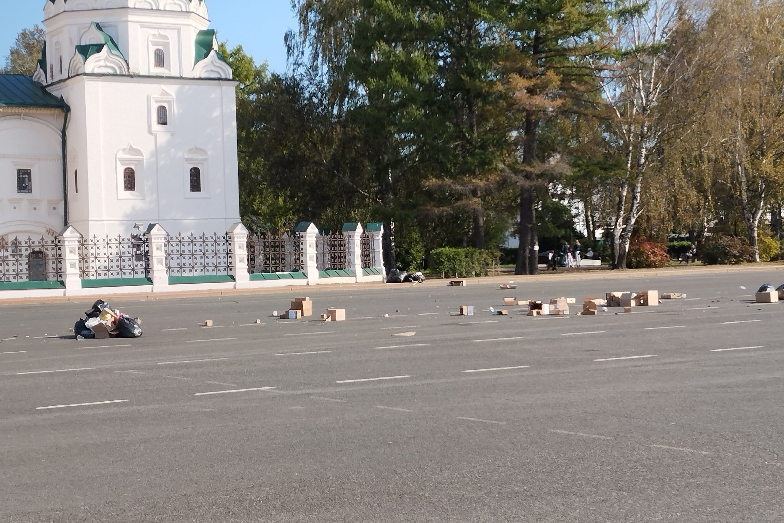 В воскресенье утром, 24 сентября, жители города заметили коробки и пакеты с мусором на главной площади города.