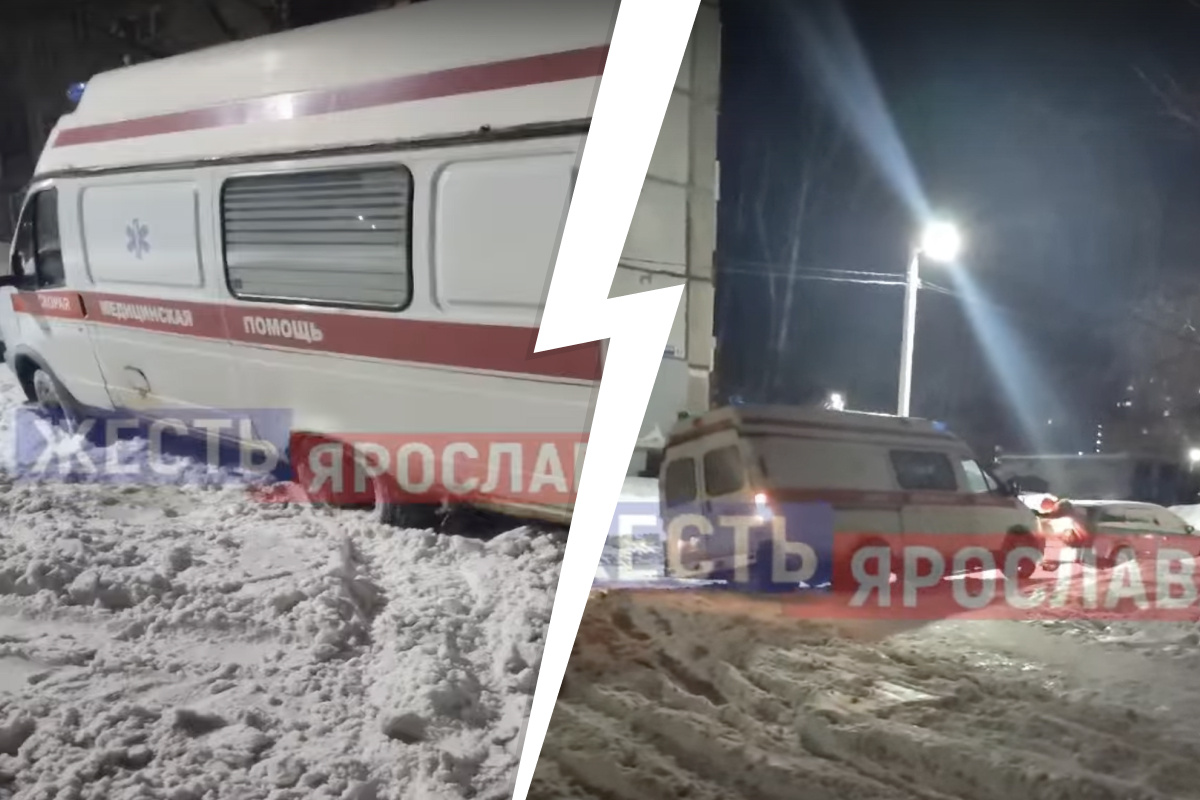 В Дзержинском районе Ярославля застряла карета скоро помощи. Вечером 26 января машина медиков погрязла в снежной массе во дворе дома 56 на улице Громова и не могла выехать.