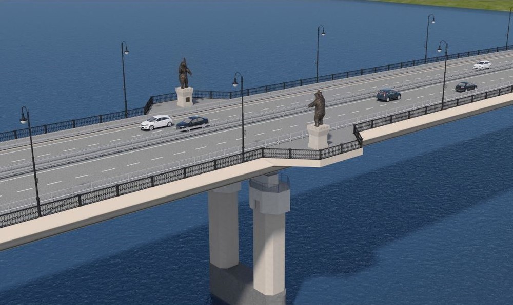 Интересно, что медведь, изображенный на мосту, как будто приветствует автомобилистов, въезжающих на переправу. Это добавляет особую атмосферу и местный колорит в облик нового сооружения.