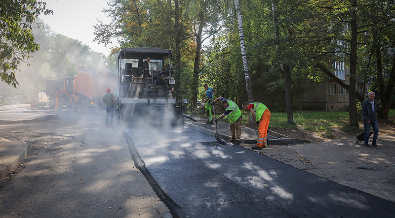 В Рыбинске завершается ремонт дворов на пр. Серова, 11 и ул. Бабушкина, 7 – подрядчик укладывает второй слой асфальта.