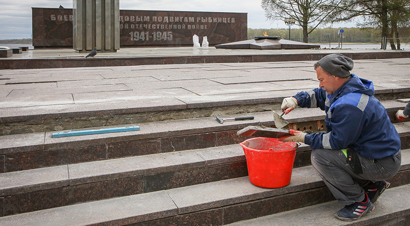 — Рабочие вернули на место плитку, которая отваливается из-за мороза и попадающей в щели воды, — рассказывает Алишер Рустамов, замглавы Рыбинска по архитектуре и градостроительству.