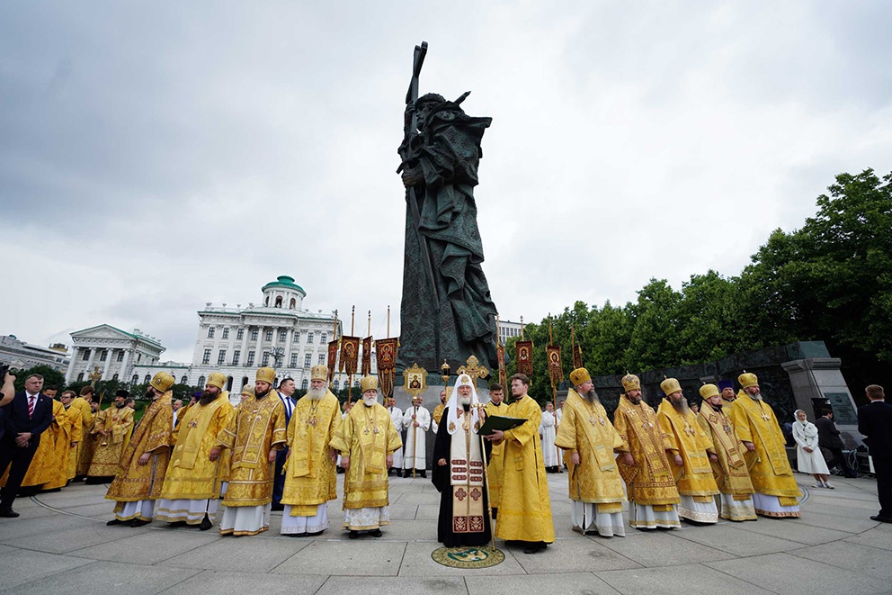 28 июля 2023 года, в день памяти равноапостольного великого князя Владимира, во Святом Крещении Василия, день церковно-государственного праздника Крещения Руси, Святейший Патриарх Московский и всея Руси Кирилл совершил молебен у памятника святому князю Владимиру на Боровицкой площади в Москве. По окончании богослужения Предстоятель Русской Православной Церкви обратился к верующим с Первосвятительским словом.