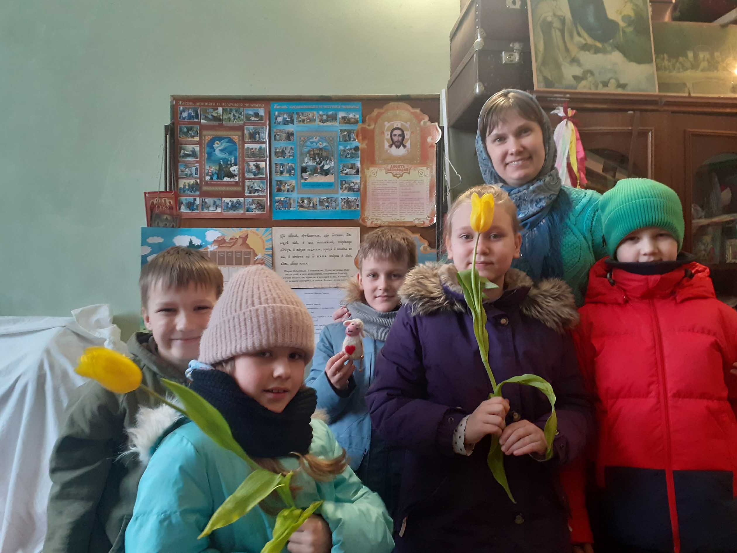 Сегодня учащиеся воскресной школы читали новые письма от своих друзей и писали ответы.