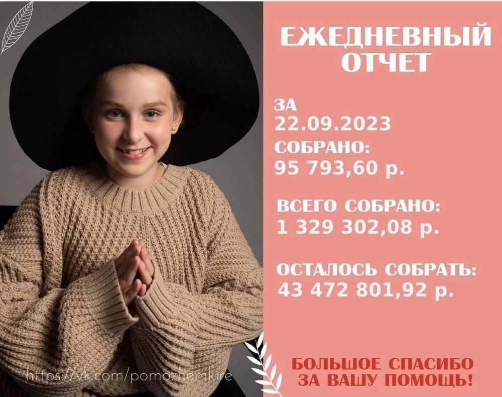 «При нашем заболевании Кире уже дали максимальное лечение, которое возможно в России, но оно не помогло. Клеточная терапия — наш единственный шанс»,— пишут родители в созданном для сбора средств телеграм-канале . Там же можно найти и реквизиты, если вы готовы помочь девочке в ее борьбе с лейкозом.