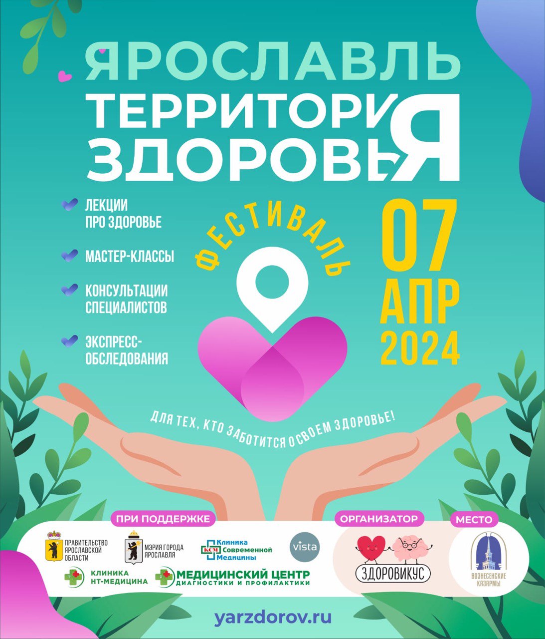 Мероприятие пройдёт 7 апреля с 11 до 17 часов. Ознакомиться с подробной информацией можно на официальной странице в социальной сети «Вконтакте» https://vk.com/yarzdorovfest