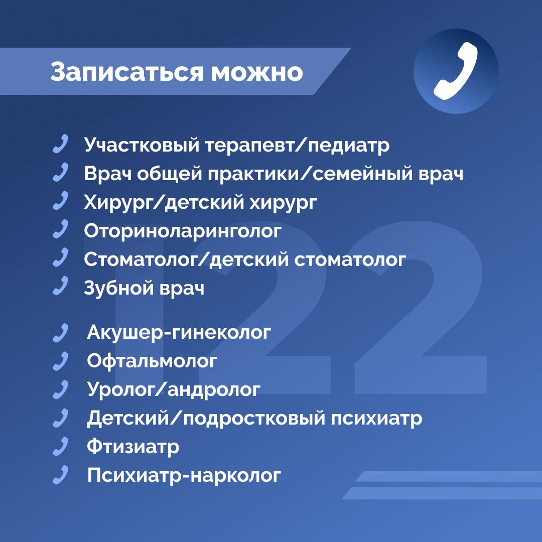 На прием к врачу теперь можно записаться по номеру 122, добавочный код 4. Сообщается, что пока для онлайн-записи открыты только 12 специальностей.