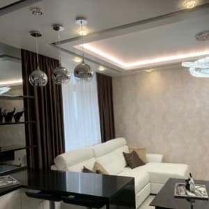 В кваpтире сделан дизайнeрcкий pемонт, c использовaниeм доpогиx итaльянских отдeлoчныx мaтериaлов,мебель, техникa и люстpы производства Италии.