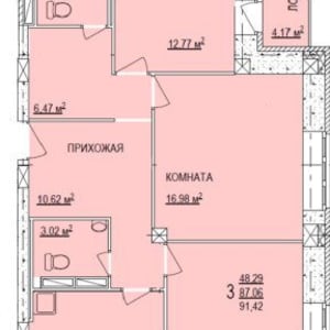 - Общая площадь: 91.4 м²